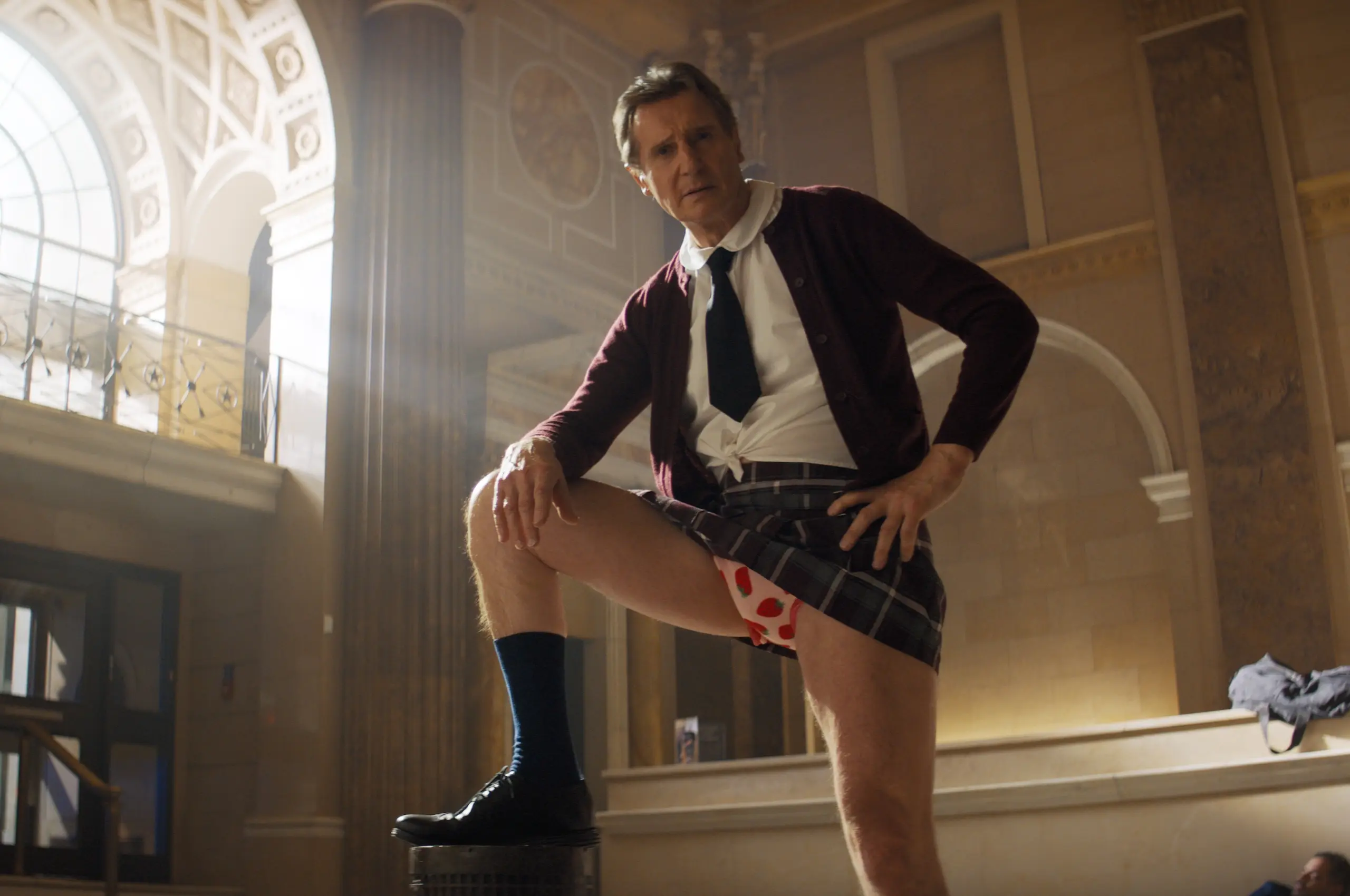 Liam is game for a lot. If he trusts you, he’ll try anything. And the first time I spoke to him, he said, “Listen, you know, I’m not a comedian. This is not what I do. I’m not a comic. So if we go into it with that understanding, that the lines that I’m doing will be dramatic lines that are funny because of the way I’m delivering them. And that’s how it’s got to work.” And luckily, that’s the essence of what these kinds of movies are. So it was perfect. It’s like, “Yeah, this is exactly what we want you to do.” He’s a really smart guy who understands his own talents and his own abilities. That’s why the idea of Liam doing this was so exciting.